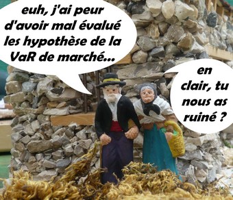 La VaR est un instrument de mesure synthétique du risque extrême. Issue des cogitations des cadres de la banque J.P.Morgan, elle connut un succès foudroyant dans les années 90 et fut consacrée quelques années après sa création par le Comité de Bâle 2. Ce dernier en préconisait l’utilisation pour calculer le montant minimal de capitaux propres dont les banques devaient disposer, dès lors qu’elles se fondaient sur des méthodes internes.