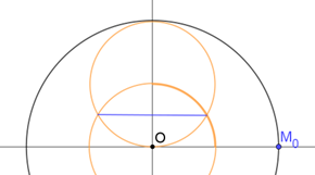 Ci-dessous, la partie basse du cercle nous a servi à trouver un écartement du compas de longueur \(\frac{1}{2}.\)