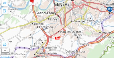 Utilisons par exemple Viamichelin, site de cartographie spécialisée dans les déplacements. Nous sommes ici dans une zone située à cheval entre la Haute-Savoie et le canton de Genève.