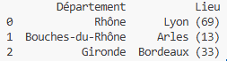 Exemple pour afficher la colonne des départements : print(df["Département"])
